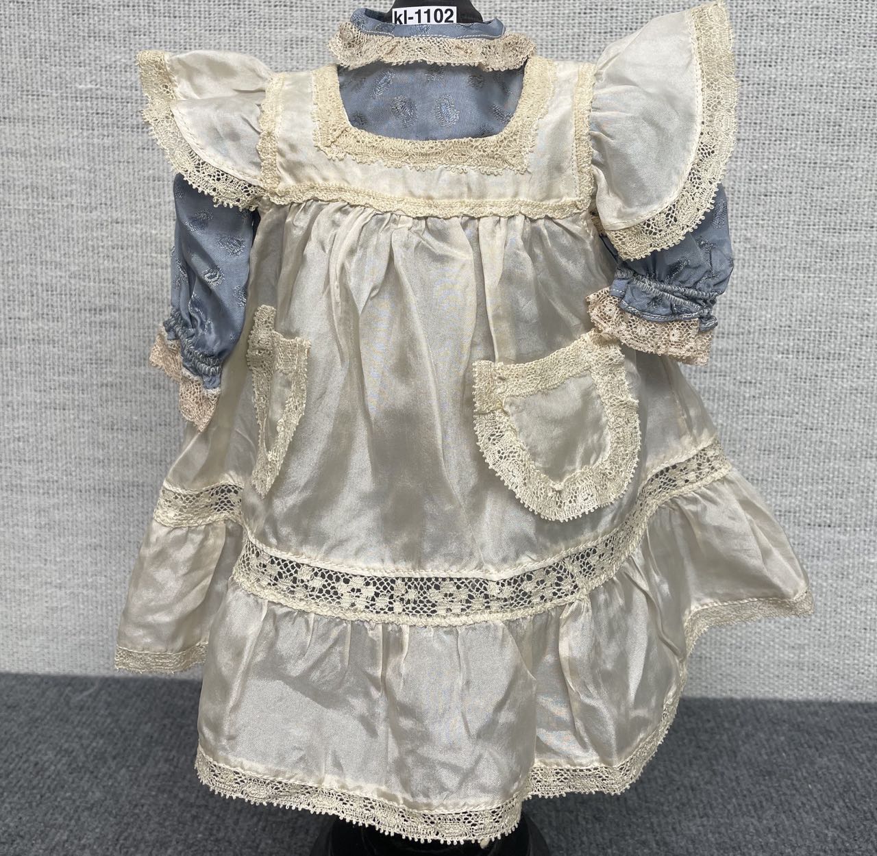 Material: Seidenschürze, Kleid Kunstseide mit Baumwolle Spitzen