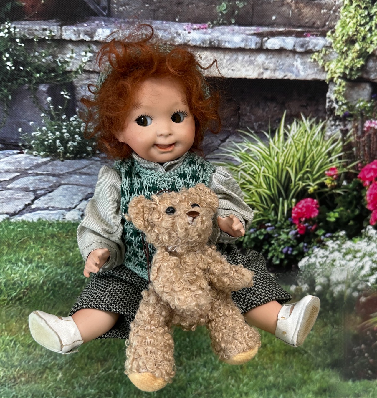 Kopf, Körper, feste Arme und Beine Porzellan, Glasaugen,